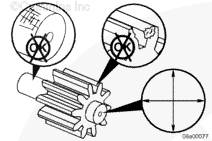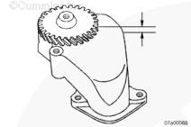測量右惰輪(大)和機油泵齒輪的齒隙。參考第 1 節(jié)中的步驟 001-055(前齒輪系齒隙)。