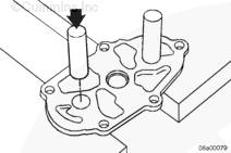 注: 將兩個機油泵從動齒輪軸壓入蓋中。