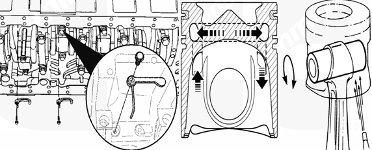 • 活塞銷和軸頸的潤(rùn)滑由來(lái)自噴嘴的機(jī)油飛濺潤(rùn)滑。