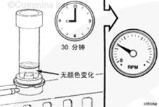 如果在 30 分鐘的測試期間,測試液沒有從藍色變?yōu)辄S色,讓康明斯ISB3.9發(fā)動機回到低怠速。