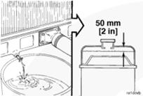 排放冷卻液,使冷卻液液位下降到散熱器加注頸中壓力蓋密封件下約 50 mm [2 in] 處。