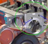 主軸承蓋裝反時(shí),A處與B處干涉,無(wú)法裝配,安裝主軸承蓋要注意編號(hào)。