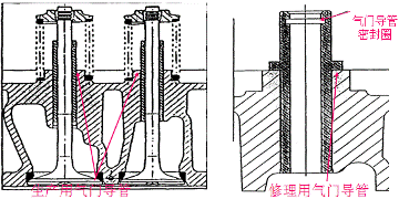 3、新機(jī)的氣門導(dǎo)管沒有定位肩。但修理時(shí)為了準(zhǔn)確定位,氣門導(dǎo)管是帶定位肩的(原裝發(fā)動(dòng)機(jī))。氣門導(dǎo)管密封圈鑲嵌在導(dǎo)管內(nèi)。