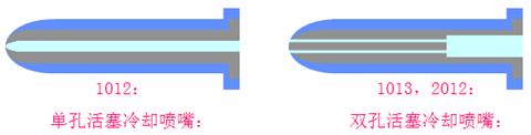 向活塞體內(nèi)部噴射潤滑油實現(xiàn)活塞冷卻。塑料制成的活塞冷卻噴嘴裝在主軸承座內(nèi)。安裝時不需要對準。