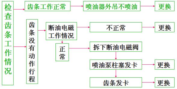 道依茨BF6M1013柴油發(fā)動(dòng)機(jī)故障診斷 F2L1011、F3L1011、F4L1011、F2L912/3、F3L912/3、F4L912/3、BF4L914、BF4M1011F、F4M1011F、F3M1011F、BF4M2012、BF4M1013、F8L413 ■ 使用中的故障常常是由于使用和維護(hù)不當(dāng)造成的。 ■ 發(fā)現(xiàn)問(wèn)題的時(shí)候,先檢查是否嚴(yán)格按操作和維護(hù)的規(guī)定做了。 ■ 如不能自行判斷故障或沒(méi)有能力維修請(qǐng)與道依茨維修服務(wù)部聯(lián)系。 ■ 起動(dòng)前,人員應(yīng)該遠(yuǎn)離發(fā)動(dòng)機(jī)及所拖帶的機(jī)械的危險(xiǎn)區(qū)域。 ■ 注意修理時(shí): ■ 脫開蓄電池,以防在沒(méi)有調(diào)速器的情況下起動(dòng)發(fā)動(dòng)機(jī)。 一、道依茨BF6M1013柴油發(fā)動(dòng)機(jī)起動(dòng)困難或不能啟動(dòng) 原因; 1、(應(yīng)該脫開的)離合器未脫開 2、溫度低于起動(dòng)極限溫度 3、停車桿在停車位置(停車電磁鐵故障) 4、速度桿在中間位置 5、冷卻風(fēng)扇不工作/皮帶斷或松(皮帶驅(qū)動(dòng)輸油泵) 6、電瓶虧電或故障 7、起動(dòng)馬達(dá)的接線松脫或氧化 8、起動(dòng)馬達(dá)損壞或掛不上齒 9、氣門間隙不對(duì) 10、高壓油管泄漏 11、預(yù)熱塞故障 12、噴油器損壞 13、柴油系統(tǒng)中有空氣 14、柴油濾和柴油初濾臟 15、機(jī)油等級(jí)不對(duì)或粘度不對(duì) 16、柴油不符合標(biāo)準(zhǔn) 道依茨BF6M1013柴油發(fā)動(dòng)機(jī)判斷故障:高、低、回油路故障區(qū)分 故障現(xiàn)象:用起動(dòng)機(jī)帶動(dòng)發(fā)動(dòng)機(jī)運(yùn)轉(zhuǎn),尾氣無(wú)煙色沒(méi)有起動(dòng)證兆。 判斷手法:斷缸法。 1、流出柴油;表明故障發(fā)生在高壓油路。 2、流出的柴油里有空氣;發(fā)生在低壓油路或回油路。 3、沒(méi)有柴油流出; 故障發(fā)生在低壓油路。 道依茨BF6M1013柴油發(fā)動(dòng)機(jī)高壓油路故障判斷 低壓腔不來(lái)油故障 用手油泵檢查道依茨BF6M1013柴油發(fā)動(dòng)機(jī)低壓油路故障 二、道依茨BF6M1013柴油發(fā)動(dòng)機(jī)能夠起動(dòng),但運(yùn)轉(zhuǎn)不平穩(wěn)或無(wú)法控制 原因; 1、冷卻風(fēng)扇不工作/皮帶斷或松(皮帶驅(qū)動(dòng)輸油泵) 2、氣門間隙不對(duì) 3、高壓油管泄漏 4、噴油器損壞 5、柴油系統(tǒng)中有空氣 6、柴油濾和柴油初濾臟 7、柴油不符合標(biāo)準(zhǔn) 三、DEUTZ BFM1013發(fā)動(dòng)機(jī)動(dòng)力不足及檢測(cè)程序(5bar系統(tǒng)) 1. 用轉(zhuǎn)速表檢查最高空轉(zhuǎn)根據(jù)發(fā)動(dòng)機(jī)的配制不同,最高空轉(zhuǎn)應(yīng)比額定轉(zhuǎn)速高6-8%?;镜挠?jì)算公式如下:最高空轉(zhuǎn) =額定轉(zhuǎn)速×1.07 如果最高空轉(zhuǎn)不夠,檢查加油手柄是否頂?shù)阶罡呖辙D(zhuǎn)限位螺釘。 2. 檢查噴油器,是否有滴漏及由于初級(jí)油路壓力不夠?qū)е碌难ㄎg。 3. 檢查低壓油路系統(tǒng),低壓油路壓力不足會(huì)直接導(dǎo)致動(dòng)力不足及噴油器穴蝕。 5bar系統(tǒng)中低壓油路的最小供油壓力應(yīng)為(空載): 1500-1899/min >4.2bar 1900-2300/min > 5.0bar >2300/min >5.3bar 低壓油路的壓力檢測(cè)點(diǎn)應(yīng)在細(xì)濾的出油口后(即曲軸箱的進(jìn)油口處),如果這一位置沒(méi)有測(cè)量空間,可在回油閥前(即曲軸箱的出油口處)測(cè)量。注意:在額定轉(zhuǎn)速下,曲軸箱的出油口處測(cè)得的壓力應(yīng)比曲軸箱進(jìn)油口處的油壓低1.0bar左右。 以下各項(xiàng)都是導(dǎo)致低壓油路壓力不足的原因: — 燃油初濾及細(xì)濾是否堵塞 — 回油閥是否有失效 — 從油箱到輸油泵的輸油管路中是否流動(dòng)阻力過(guò)大 — 輸油泵是否提供足夠的供油壓力 另一原因是,從回油閥到油箱的輸油管路中是否流動(dòng)阻力過(guò)大。如果阻力過(guò)大則回油量不足且燃油溫度會(huì)升高(燃油溫度不應(yīng)超過(guò)80℃)。 在確保濾芯沒(méi)有堵塞的情況下,如果油壓達(dá)不到,應(yīng)檢查或更換回油閥。 如果壓力仍不夠應(yīng)檢查輸油管路中是否流動(dòng)阻力過(guò)大。方法: 直接用一個(gè)油筒在輸油泵前供油,這樣可以確定是否是OEM所配的從油箱到輸油泵的供油管路及初濾造成的阻力過(guò)大。 要求:輸油泵前的油管內(nèi)徑不能小于12mm,且在最高空轉(zhuǎn)時(shí)輸油泵的入口處的燃油壓力應(yīng)大于-0.5bar,滿足歐2排放的發(fā)動(dòng)機(jī)應(yīng)大于-0.35bar。 如果仍然壓力不足應(yīng)檢查燃油回油量。方法: 將回油管的回油端從油箱上拆下直接插到一個(gè)空桶中。 測(cè)量發(fā)動(dòng)機(jī)1分鐘最高空轉(zhuǎn)下的回油量,應(yīng)在8升以上。 4.檢查滿負(fù)荷時(shí)的增壓空氣壓力及排氣溫度。只有當(dāng)轉(zhuǎn)速由最高空轉(zhuǎn)降低到額定轉(zhuǎn)速甚至更低時(shí),發(fā)動(dòng)機(jī)的輸出才能達(dá)到滿負(fù)荷。 滿負(fù)荷時(shí)進(jìn)氣歧管中的增壓壓力應(yīng)至少達(dá)到1.3bar,排氣溫度(在增壓器后100mm的測(cè)量點(diǎn))應(yīng)有450℃-480℃。 如果供油量充足而增壓壓力仍不足,應(yīng)檢查排氣背壓,不應(yīng)超過(guò)500mm水柱。 5如果仍然動(dòng)力不足,對(duì)調(diào)速器或噴油正時(shí)的檢查必須由DEUTZ的服 務(wù)工程師進(jìn)行。低壓油路壓力檢測(cè)點(diǎn)及回油閥位置: