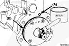 如果機(jī)油冷卻器蓋沒有凹痕,按所示順序擰緊螺栓。箭頭 (A) 指向凹痕的位置。