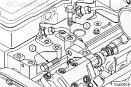 注: 使用扳手將管接頭固定在機(jī)油濾清器座供油管的下面。這會(huì)防止管接頭過度擰緊。