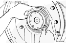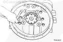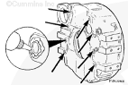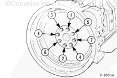 擰緊飛輪螺栓時(shí)使用盤車工具(零件號(hào) 3824591)固定曲軸。按星形方式擰緊螺栓。扭矩值: 137 n.m [101 ft-lb]