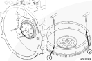 注: 安裝飛輪殼之前,應(yīng)確保所有定位銷位于拆卸飛輪殼時(shí)的相同位置。