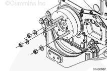 在將康明斯ISX15 CM2250發(fā)動(dòng)機(jī)蓋固定到位的同時(shí),用三個(gè) M8 螺釘,一個(gè)六角螺母和兩個(gè) M12 螺釘安裝下齒輪室蓋并手動(dòng)擰緊。