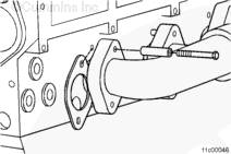 將排氣歧管安裝螺釘和隔套插入歧管和密封墊,將螺釘擰入缸蓋。