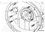 注: 在涂上密封膠后的 10 分鐘內(nèi)安裝飛輪殼,否則密封膠不能正確密封。一旦安裝上,讓密封膠干燥 30 分鐘,然后再運轉(zhuǎn)發(fā)動機。