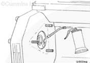 使用 50/50 的清潔發(fā)動(dòng)機(jī)機(jī)油和 STP 的混合物或等同物潤滑齒輪室蓋殼體,確保噴油泵能夠很容易地滑入齒輪室蓋殼體。