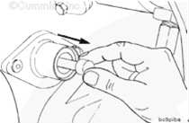 松開 Bosch® 燃油泵鎖緊正時(shí)螺釘,然后安裝連到燃油泵上的專用墊圈。