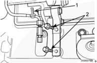 先將支架擰緊到 缸體 (1) 上,然后將其擰緊到噴油泵 (2) 上。