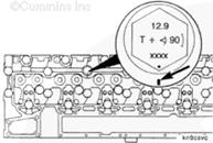 轉(zhuǎn)動(dòng)螺栓直到在缸蓋上做的標(biāo)記進(jìn)入螺栓頭的“窗口”中。