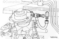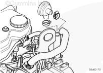 在康明斯B3.9、B4.5、B4.5 RGT 和 B5.9 發(fā)動機閉式曲軸箱通風軟管上連接閉式曲軸箱通風閥,然后固定軟管卡箍。