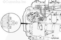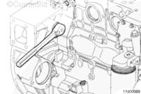 注: 正時銷用于精確定位上止點以設置頂置機構。通常正時銷位于燃油泵下方。對于康明斯前齒輪系發(fā)動機,位于前齒輪室內(如圖所示)