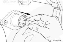 在壓下康明斯發(fā)動機正時銷的同時緩慢盤動曲軸,以定位 1 號氣缸的上止點 (TDC)。建議從發(fā)動機后部的飛輪上盤動發(fā)動機。
