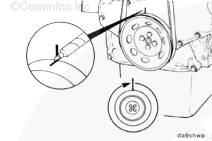 標記康明斯發(fā)動機皮帶輪,轉動曲軸 360 度。
