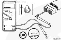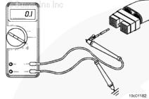 檢查觸針之間是否存在短路。按前述方法設(shè)置開關(guān)以隔離巡航控制開關(guān)電路。將巡航控制/PTO ON/OFF 開關(guān)置于 OFF 位置。將測試導(dǎo)線插入巡航控制 ON/OFF 開關(guān)輸入觸針。用鱷魚夾連接萬用表。將另一根測試導(dǎo)線插入開關(guān)回路導(dǎo)線,并測量電阻。