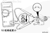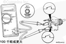 當(dāng)開關(guān)保持在 SET/COAST(設(shè)置/滑行)位置時,萬用表必須顯示閉路特征(10 歐姆或更?。?/P>