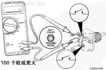 當(dāng)開關(guān)釋放時,萬用表必須顯示開路特征(100 千歐或更大)。如果在任何一項測試中萬用表不能顯示正確值,說明開關(guān)已經(jīng)故障。