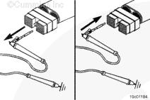 將測試導(dǎo)線插入 OEM 線束接頭的巡航控制/PTO 設(shè)置/滑行開關(guān)信號觸針,然后將鱷魚夾連接到萬用表表筆上。