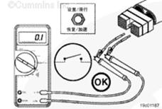 將測試導(dǎo)線插入原始設(shè)備制造商 (OEM) 線束接頭的巡航控制 ON/OFF 開關(guān)信號觸針,并且將其與萬用表表筆相連。將另一根表筆接觸康明斯ISF3.8 CM2220發(fā)動機(jī)缸體接地。