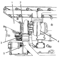 2松開軟管卡箍(3),然后將管組件(5)從Perkins1106A/C發(fā)動機渦輪增壓器(4)上斷開。