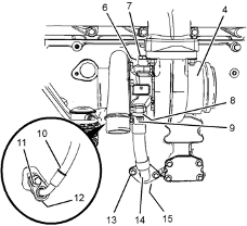 10.將管組件(14)從Perkins1106A/C發(fā)動機渦輪增壓器(4)和Perkins1106A/C發(fā)動機缸體上拆下。