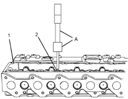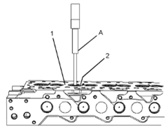 2用清潔的發(fā)動機(jī)機(jī)油潤滑新氣門導(dǎo)管(2)。將氣門導(dǎo)管(2)置于Perkins1106A/C發(fā)動機(jī)缸蓋(1)上的位置中。小心輕敲氣門導(dǎo)管以開始安裝。