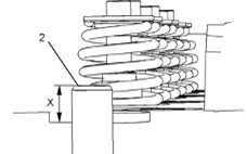 5檢查氣門導(dǎo)管(2)的凸出(X)。氣門導(dǎo)管應(yīng)比Perkins1106A/C發(fā)動機(jī)氣門彈簧凹槽高出12.7mm(0.500in)。有關(guān)更多資料,請參閱《技術(shù)規(guī)格》,“Perkins1106A/C發(fā)動機(jī)缸蓋氣門”。