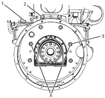 Perkins1106A/C發(fā)動機(jī)機(jī)殼體-拆卸和安裝 (標(biāo)準(zhǔn)Perkins1106A/C發(fā)動機(jī)機(jī)殼體) 拆卸步驟 開始: a.拆下飛輪。有關(guān)正確的步驟,請參閱《Perkins1106A/C發(fā)動機(jī)拆解和組裝》,“飛輪-拆卸”。 注意:保持所有零件清潔無雜質(zhì)。雜質(zhì)會造成快速磨損和縮短部件壽命。 1將螺栓(3)從Perkins1106A/C發(fā)動機(jī)飛輪Perkins1106A/C發(fā)動機(jī)機(jī)殼體(1)的位置(X)上拆下。 2將工具(A)安裝在Perkins1106A/C發(fā)動機(jī)飛輪Perkins1106A/C發(fā)動機(jī)機(jī)殼體(1)上的位置(X)。 3將適當(dāng)?shù)钠鸬踉O(shè)備安裝到Perkins1106A/C發(fā)動機(jī)飛輪Perkins1106A/C發(fā)動機(jī)機(jī)殼體上來支撐住Perkins1106A/C發(fā)動機(jī)飛輪Perkins1106A/C發(fā)動機(jī)機(jī)殼體。Perkins1106A/C發(fā)動機(jī)飛輪Perkins1106A/C發(fā)動機(jī)機(jī)殼體的重量約為40kg(88lb)。 4將螺栓(2)和其余螺栓(3)從Perkins1106A/C發(fā)動機(jī)飛輪Perkins1106A/C發(fā)動機(jī)機(jī)殼體(1)上拆下。 5使用適當(dāng)?shù)钠鸬踉O(shè)備,將Perkins1106A/C發(fā)動機(jī)飛輪Perkins1106A/C發(fā)動機(jī)機(jī)殼體(1)從Perkins1106A/C發(fā)動機(jī)缸體上卸下。 6.拆下防塵密封件(5)。 7.如有必要,將定位銷(4)從Perkins1106A/C發(fā)動機(jī)缸體上卸下。 安裝程序(標(biāo)準(zhǔn)Perkins1106A/C發(fā)動機(jī)機(jī)殼體) 注意:保持所有零件清潔無雜質(zhì)。雜質(zhì)會造成快速磨損和縮短部件壽命。 1.確保Perkins1106A/C發(fā)動機(jī)飛輪Perkins1106A/C發(fā)動機(jī)機(jī)殼體清潔且無損壞。如有必要,更換Perkins1106A/C發(fā)動機(jī)飛輪Perkins1106A/C發(fā)動機(jī)機(jī)殼體。 2檢查Perkins1106A/C發(fā)動機(jī)曲軸后油封(6)有無泄漏。如果觀察到漏油,更換Perkins1106A/C發(fā)動機(jī)曲軸后油封。有關(guān)正確的步驟,請參閱《Perkins1106A/C發(fā)動機(jī)拆解和組裝》,“Perkins1106A/C發(fā)動機(jī)曲軸后油封-拆卸”和《Perkins1106A/C發(fā)動機(jī)拆解和組裝》,“Perkins1106A/C發(fā)動機(jī)曲軸后油封-安裝”。 3清潔Perkins1106A/C發(fā)動機(jī)缸體后表面。如有必要,將定位銷(4)安裝到Perkins1106A/C發(fā)動機(jī)缸體上。 4將工具(A)安裝到Perkins1106A/C發(fā)動機(jī)缸體上。 5安裝防塵密封件(5)。 6將適當(dāng)?shù)钠鸬踉O(shè)備安裝到Perkins1106A/C發(fā)動機(jī)飛輪Perkins1106A/C發(fā)動機(jī)機(jī)殼體上。Perkins1106A/C發(fā)動機(jī)飛輪Perkins1106A/C發(fā)動機(jī)機(jī)殼體的重量約為40kg(88lb)。 7使用起吊設(shè)備對準(zhǔn)Perkins1106A/C發(fā)動機(jī)飛輪Perkins1106A/C發(fā)動機(jī)機(jī)殼體(1)與工具(A)。將Perkins1106A/C發(fā)動機(jī)飛輪Perkins1106A/C發(fā)動機(jī)機(jī)殼體安裝到Perkins1106A/C發(fā)動機(jī)缸體上。 8安裝螺栓(2)和螺栓(3)。 9拆下工具(A)。安裝其余的螺栓(3)。 10.當(dāng)安裝了8.8級別的螺栓時(shí),按照步驟10.a至步驟10.b。 a.擰緊螺栓(3)至扭矩為63N·m(46lbft)。 b.擰緊螺栓(2)至扭矩為78N·m(58lbft)。 11.當(dāng)安裝了10.9級別的螺栓時(shí),按照步驟11.a至步驟11.b。 a.擰緊螺栓(3)至扭矩為115N·m(85lbft)。 b.擰緊螺栓(2)至扭矩為190N·m(140lbft)。 12.檢查Perkins1106A/C發(fā)動機(jī)飛輪Perkins1106A/C發(fā)動機(jī)機(jī)殼體(1)和Perkins1106A/C發(fā)動機(jī)曲軸的對準(zhǔn)。有關(guān)更多信息,請參閱《系統(tǒng)操作、測試和調(diào)整》,“Perkins1106A/C發(fā)動機(jī)飛輪Perkins1106A/C發(fā)動機(jī)機(jī)殼體-檢查”。 結(jié)束: a.安裝飛輪。有關(guān)正確的步驟,請參閱《Perkins1106A/C發(fā)動機(jī)拆解和組裝》,“飛輪-安裝”。