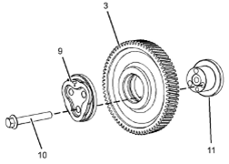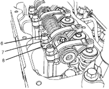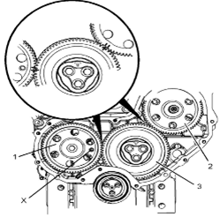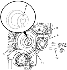 Perkins1106A/C發(fā)動(dòng)機(jī)惰齒輪-拆卸 拆卸步驟 Perkins1106A/C發(fā)動(dòng)機(jī)曲軸轉(zhuǎn)動(dòng)工具用于前皮帶輪。 該工具在電動(dòng)起動(dòng)馬達(dá)的孔上使用。 開始: a.拆卸Perkins1106A/C發(fā)動(dòng)機(jī)噴油泵齒輪。請(qǐng)參閱《Perkins1106A/C發(fā)動(dòng)機(jī)拆解和組裝》,“Perkins1106A/C發(fā)動(dòng)機(jī)燃油泵齒輪-拆卸”。 b.拆下Perkins1106A/C發(fā)動(dòng)機(jī)氣門機(jī)構(gòu)蓋。請(qǐng)參閱《Perkins1106A/C發(fā)動(dòng)機(jī)拆解和組裝》,“Perkins1106A/C發(fā)動(dòng)機(jī)氣門機(jī)構(gòu)蓋-拆卸和安裝”。 注:可以使用兩個(gè)工具(A)中的任意一個(gè)。請(qǐng)使用最適用的工具。 注:必須小心操作,確保在Perkins1106A/C發(fā)動(dòng)機(jī)燃油泵齒輪的拆卸過程 注意:保持所有零件清潔無雜質(zhì)。雜質(zhì)會(huì)造成快速磨損和縮短部件壽命。 1從Perkins1106A/C發(fā)動(dòng)機(jī)缸體上拆下螺塞(5)。從螺塞(5)拆下O形密封圈(4)。 2使用工具(A)轉(zhuǎn)動(dòng)Perkins1106A/C發(fā)動(dòng)機(jī)曲軸,使1號(hào)Perkins1106A/C發(fā)動(dòng)機(jī)活塞處于其壓縮沖程的上止點(diǎn)位置。請(qǐng)參閱《系統(tǒng)操作、測(cè)試和調(diào)整》,“查找1號(hào)Perkins1106A/C發(fā)動(dòng)機(jī)活塞上止點(diǎn)位置”。 3將工具(B)安裝到Perkins1106A/C發(fā)動(dòng)機(jī)缸體的孔(Y)中。使用工具(B),將Perkins1106A/C發(fā)動(dòng)機(jī)曲軸鎖定到位。 注:安裝工具(B)時(shí)不要使用過大的力量。在修理過程中不要使用工具(B)固定Perkins1106A/C發(fā)動(dòng)機(jī)曲軸。 4.確保已將工具(C)安裝在Perkins1106A/C發(fā)動(dòng)機(jī)凸輪軸齒輪的孔(X)中。使用工具(C)將Perkins1106A/C發(fā)動(dòng)機(jī)凸輪軸鎖定到位。 5.確保已標(biāo)記齒輪(1)、(2)和(3)以便顯示對(duì)準(zhǔn)位置。 6松開所有搖臂(8)上的螺母(7)。擰松所有搖臂(8)上的調(diào)節(jié)器(6),直到所有氣門完全閉合。 注:如果不能保證完全擰松所有調(diào)節(jié)器,可能會(huì)導(dǎo)致氣門與Perkins1106A/C發(fā)動(dòng)機(jī)活塞接觸。 7.標(biāo)記板(9)以顯示朝向。 注:識(shí)別標(biāo)記能確保將板安裝在原來的對(duì)準(zhǔn)位置。 8.拆下螺栓(10)。 9.拆下板(9)。 10.將Perkins1106A/C發(fā)動(dòng)機(jī)惰齒輪組件(3)和輪轂(11)從前Perkins1106A/C發(fā)動(dòng)機(jī)機(jī)殼體的凹槽上卸下。 注:在拆卸過程中必須傾斜Perkins1106A/C發(fā)動(dòng)機(jī)惰齒輪。 11.將輪轂(11)從Perkins1106A/C發(fā)動(dòng)機(jī)惰齒輪(3)上卸下。 Perkins1106A/C發(fā)動(dòng)機(jī)惰齒輪-安裝 安裝步驟 Perkins1106A/C發(fā)動(dòng)機(jī)曲軸轉(zhuǎn)動(dòng)工具用于前皮帶輪。 該工具在電動(dòng)起動(dòng)馬達(dá)的孔上使用。 1如有必要,使用工具(A)確保1號(hào)Perkins1106A/C發(fā)動(dòng)機(jī)活塞處于壓縮行程上止點(diǎn)。有關(guān)正確的步驟,請(qǐng)參閱《系統(tǒng)操作、測(cè)試和調(diào)整》,“查找1號(hào)Perkins1106A/C發(fā)動(dòng)機(jī)活塞上止點(diǎn)位置”。 2確保已將工具(B)安裝在Perkins1106A/C發(fā)動(dòng)機(jī)缸體的孔(Y)中。使用工具(B),將Perkins1106A/C發(fā)動(dòng)機(jī)曲軸鎖定到位。 3.確保已將工具(C)安裝在Perkins1106A/C發(fā)動(dòng)機(jī)凸輪軸齒輪(1)的孔(X)中。 4清潔Perkins1106A/C發(fā)動(dòng)機(jī)惰齒輪(3),檢查Perkins1106A/C發(fā)動(dòng)機(jī)惰齒輪有無磨損或損壞。有關(guān)更多資料,請(qǐng)參閱《技術(shù)規(guī)格》,“齒輪總成(前)”。如有必要,更換Perkins1106A/C發(fā)動(dòng)機(jī)惰齒輪。 5清潔輪轂(11),檢查輪轂有無磨損或損壞。有關(guān)更多資料,請(qǐng)參閱《技術(shù)規(guī)格》,“齒輪總成(前)”。如有必要,更換輪轂。 6使用清潔的發(fā)動(dòng)機(jī)Perkins1106A/C發(fā)動(dòng)機(jī)機(jī)油潤滑輪轂(11)。將輪轂(11)滑入Perkins1106A/C發(fā)動(dòng)機(jī)惰齒輪(3)。確保正時(shí)標(biāo)記朝向Perkins1106A/C發(fā)動(dòng)機(jī)惰齒輪前部。 7對(duì)準(zhǔn)Perkins1106A/C發(fā)動(dòng)機(jī)惰齒輪(3)與Perkins1106A/C發(fā)動(dòng)機(jī)凸輪軸齒輪上的的正時(shí)標(biāo)記。請(qǐng)參閱插圖135。將Perkins1106A/C發(fā)動(dòng)機(jī)惰齒輪組件(3)和輪轂(11)安裝到正時(shí)箱的凹槽中。確保油孔(Z)靠近輪轂頂部。 注:在安裝過程中必須傾斜Perkins1106A/C發(fā)動(dòng)機(jī)惰齒輪。確保對(duì)準(zhǔn)輪轂中的孔與Perkins1106A/C發(fā)動(dòng)機(jī)缸體中的孔。 8.清潔板(9),檢查板有無磨損或損壞。如有必要,更換板。 9.使用清潔的發(fā)動(dòng)機(jī)機(jī)油潤滑板(9)。對(duì)準(zhǔn)板(9)和輪轂(11)內(nèi)的孔。將板安裝在原來的朝向。 10.安裝螺栓(10)。 11.拆下工具(B)和工具(C)。 注:拆下工具(B)和工具(C)之前,確保正時(shí)標(biāo)記已對(duì)齊。 12.擰緊螺栓(10)至扭矩為44N·m(32lbft)。 13.使用工具(D)測(cè)量Perkins1106A/C發(fā)動(dòng)機(jī)凸輪軸齒輪的端隙。有關(guān)更多資料,請(qǐng)參閱《技術(shù)規(guī)格》,“齒輪總成(前)”。 14.使用工具(D)測(cè)量Perkins1106A/C發(fā)動(dòng)機(jī)惰齒輪與Perkins1106A/C發(fā)動(dòng)機(jī)凸輪軸齒輪之間的齒隙。有關(guān)更多資料,請(qǐng)參閱《技術(shù)規(guī)格》,“齒輪總成(前)”。 15.使用工具(D)測(cè)量Perkins1106A/C發(fā)動(dòng)機(jī)惰齒輪與Perkins1106A/C發(fā)動(dòng)機(jī)