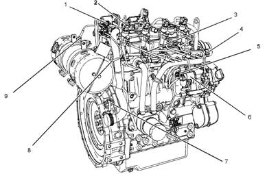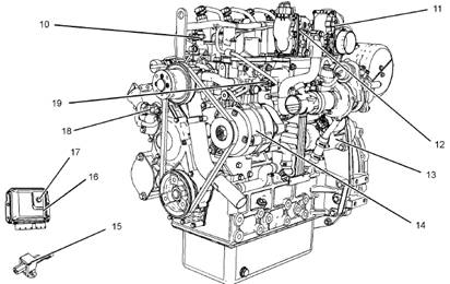 本部分中的插圖顯示工業(yè)用發(fā)動機上傳感器和其他電氣部件的典型位置。具體發(fā)動機可能因應(yīng)用而略有不同。操作部分超速(OVERSPEED