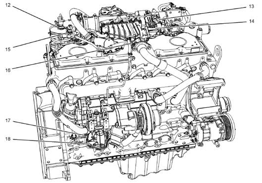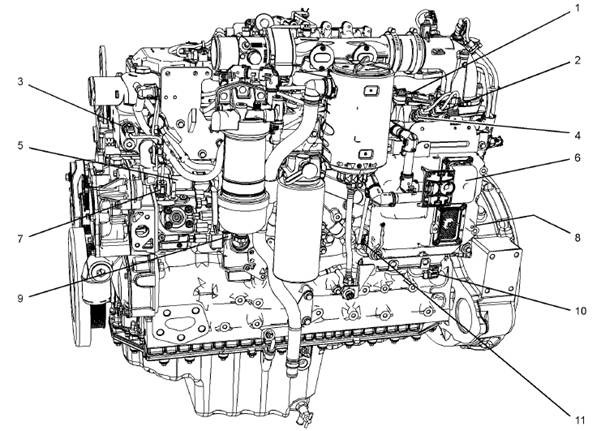 在一個(gè)典型的1206e-e66發(fā)動(dòng)機(jī)左側(cè)的傳感器位置