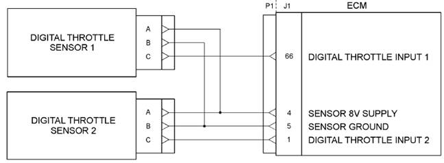 數(shù)字節(jié)氣門位置傳感器由+8VDC從ECM。電源電壓來(lái)自的j1:4終端”一個(gè)“數(shù)字油門位置傳感器連接器。
