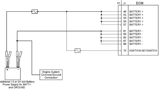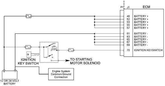 在Perkins1204e-e44tta和1206e-e66ta點火的P1連接器的引腳位置的按鍵開關(guān)和電池供電電路
