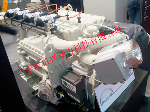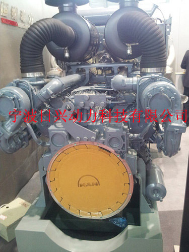 德國曼MAN工業(yè)重型發(fā)動機、四沖程、直接噴射、水冷、廢氣渦輪增壓及中間冷卻。