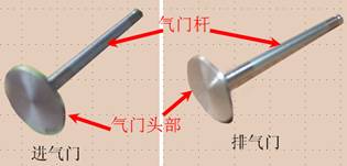 氣門分為進(jìn)氣門和排氣門,分別控制進(jìn)氣和排氣,結(jié)構(gòu)相同,進(jìn)氣門頭比排氣門頭大。