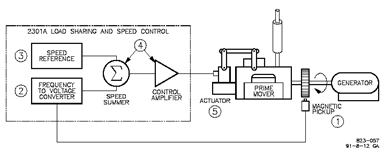 在不同負(fù)載情況下,柴油機(jī)電子調(diào)速器將保持柴油機(jī)的轉(zhuǎn)速穩(wěn)定于1000RPM(或1500RPM),從而保持發(fā)電機(jī)輸出50Hz的恒定頻率。 WOODWARD 2301A電子調(diào)速器,它具有功能全、反應(yīng)快、精度高、穩(wěn)定性好、功耗低、調(diào)整方便等一系列優(yōu)點(diǎn)。其基本結(jié)構(gòu)包括數(shù)/模轉(zhuǎn)換電路;調(diào)節(jié)放大電路、負(fù)荷分配電路、輸出電路及穩(wěn)壓電源等環(huán)節(jié)。