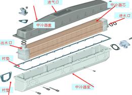 卻水流經(jīng)中冷器芯與增壓后的空氣進(jìn)行熱交換,從而預(yù)熱進(jìn)氣或降低進(jìn)氣溫度。 (詳見總成)