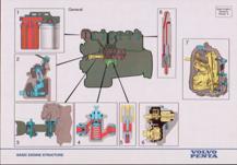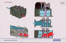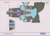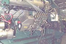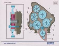 1. 能量轉(zhuǎn)換和發(fā)動機(jī)省油冷卻損失 排氣損失 摩擦損失 效率:柴油機(jī)效率約43--44%,汽油機(jī)約30%。早期柴油機(jī)效率只有2%--5%. 省油措施:提高冷卻水溫、利用排氣能量、盡量使燃燒充分、運(yùn)行于部分負(fù)載(約70%左右)等。 發(fā)電用發(fā)動機(jī)的工況劃分 兩種工況極其區(qū)別 長行主電站功率 額定功率符合ISO連續(xù)運(yùn)行的標(biāo)準(zhǔn), 適合于在不同載荷下, 持續(xù)提供動力.具有10%的過載能力. 最大備用電站功率 功率符合ISO標(biāo)準(zhǔn), 可在不同載荷下持續(xù)供電, 適合在電力設(shè)備良好的地區(qū)出現(xiàn)故障時使用.不允許有過載. 二. 發(fā)動機(jī)基本組成 往復(fù)式活塞式發(fā)動機(jī)由以下幾部分組成: 固定部件 機(jī)體、主軸承、缸套、缸蓋、飛輪殼、油地殼、機(jī)腳 運(yùn)動部件 活塞、連桿、曲軸、飛輪、傳動齒輪 換氣系統(tǒng) 凸輪軸、頂柱、挺桿、搖臂、閥橋、進(jìn)排氣閥、空氣濾器 燃油系統(tǒng) 噴油泵、噴油器、輸油泵、高壓油管、調(diào)速器、燃油濾器 潤滑系統(tǒng) 潤滑油泵、安全閥、定壓閥、減壓閥、活塞冷卻油閥、量油尺、濾器 冷卻系統(tǒng) 散熱器、中冷器、膨脹水箱、風(fēng)扇、節(jié)溫器 電氣/電子控制和報(bào)警檢測系統(tǒng) 起動馬達(dá)、充電發(fā)電機(jī)、停車電磁閥、電子模塊、接線/控制箱、儀表或顯示器 固定部件– 機(jī)體 固定部件– 缸蓋 固定部件– 機(jī)體與缸套 運(yùn)動部件– 活塞 運(yùn)動部件– 連桿 運(yùn)動部件– 曲軸 進(jìn)排氣系統(tǒng)– 進(jìn)排氣機(jī)構(gòu) 進(jìn)排氣系統(tǒng)– 傳動齒輪 1. 曲軸齒輪 2. 左惰轉(zhuǎn)齒輪 3. 噴油泵齒輪 4. 凸輪軸齒輪 5. 上惰轉(zhuǎn)齒輪 6. 淡水泵齒輪 7. 右惰轉(zhuǎn)齒輪 8. 機(jī)油泵惰齒輪 9. 機(jī)油泵齒輪 10.輔助動力輸出 進(jìn)排氣系統(tǒng)– 渦輪增壓器 冷卻系統(tǒng)– 節(jié)溫器 冷卻系統(tǒng)– 水泵 潤滑系統(tǒng)– 各閥件 1. 安全閥 2. 滑油冷卻器旁通閥 3. 滑油濾器旁通閥 4. 定壓閥 5. 活塞冷卻閥 潤滑系統(tǒng)– 各閥件 1. 安全閥 2. 滑油冷卻器旁通閥 3. 滑油濾器旁通閥 4. 定壓閥 5. 活塞冷卻閥 潤滑系統(tǒng)– 流向 潤滑系統(tǒng)– 油泵 燃油系統(tǒng)– 組成 燃油系統(tǒng)– 流向 電子執(zhí)行器 - ACB275 系列 沃爾沃柴油發(fā)動機(jī)調(diào)速板ESD5500 電子執(zhí)行器 - ACB225 RSV 調(diào)速器 (全程式) 1 調(diào)速器殼體 2 起動彈簧 3 控制桿/燃油齒條 4 油門桿 5 調(diào)速器蓋 6 怠速限位螺釘 7 調(diào)速彈簧 8 阻尼螺釘 9 調(diào)速器飛塊 10 油量限位螺釘 11 出油閥 12 柱塞偶件 13 油量調(diào)節(jié)套 14 滾輪頂柱 15 凸輪軸 RQ 調(diào)速器 (單極式) 1 控制齒桿 2 連接叉 3 間隙補(bǔ)償彈簧 4 調(diào)節(jié)螺母 5 調(diào)速彈簧 6 飛塊 7 直角杠桿 8 滑動螺栓 9 滑塊 10 導(dǎo)銷 1 調(diào)節(jié)螺母 2 外彈簧座 3 高速彈簧 4 怠速彈簧 5 飛塊 6 內(nèi)彈簧座 調(diào)速器的功用 根據(jù)負(fù)荷變化,迅速、沃爾沃柴油機(jī),沃爾沃柴油發(fā)動機(jī),沃爾沃柴油發(fā)動機(jī)維修保養(yǎng),沃爾沃維修保養(yǎng),沃爾沃柴油發(fā)動機(jī)零配件,沃爾沃柴油發(fā)動機(jī)維修保養(yǎng)報(bào)價,自動地調(diào)整供油量,使輸出功率與負(fù)荷 保持平衡,保持穩(wěn)定的轉(zhuǎn)速。限制最高轉(zhuǎn)速,防止飛車事故。保證低速空轉(zhuǎn)的穩(wěn)定性。 調(diào)速原理 軸 飛塊 傳動套筒 連桿機(jī)構(gòu) 調(diào)速彈簧, , 調(diào)速螺釘 感應(yīng)元件:3,6 執(zhí)行元件:4,5 操縱機(jī)構(gòu):7 調(diào)速原理:離心力和彈簧力的平衡 調(diào)速器的分類 (一) 4. 全電子調(diào)速器:信號感測部分和執(zhí)行機(jī)構(gòu)均為電氣式。工作能力較小,適應(yīng)于小型柴油機(jī)。 5 電液調(diào)速器:信號感測為電子式,執(zhí)行機(jī)構(gòu)為液壓伺服器。采用不同工作能力的伺服器,可滿足不同功率柴 油機(jī)的要求。 Volvo Penta 常用的調(diào)速器為機(jī)械調(diào)速器和全電子調(diào)速器 調(diào)速器的分類 (二) 一個基本的GAC調(diào)速系統(tǒng)由三部分組成 電子執(zhí)行器:與發(fā)動機(jī)的噴油泵連接 電子轉(zhuǎn)速控制單元:將發(fā)動機(jī)即時轉(zhuǎn)速與期望轉(zhuǎn)速相比較, 向電子執(zhí)行器發(fā)出更正信號. 磁性轉(zhuǎn)速傳感器:通過向轉(zhuǎn)速控制單元發(fā)出頻率信號來檢測發(fā)動機(jī)轉(zhuǎn)速 電氣系統(tǒng)-- 電氣線路圖 保持機(jī)房整潔